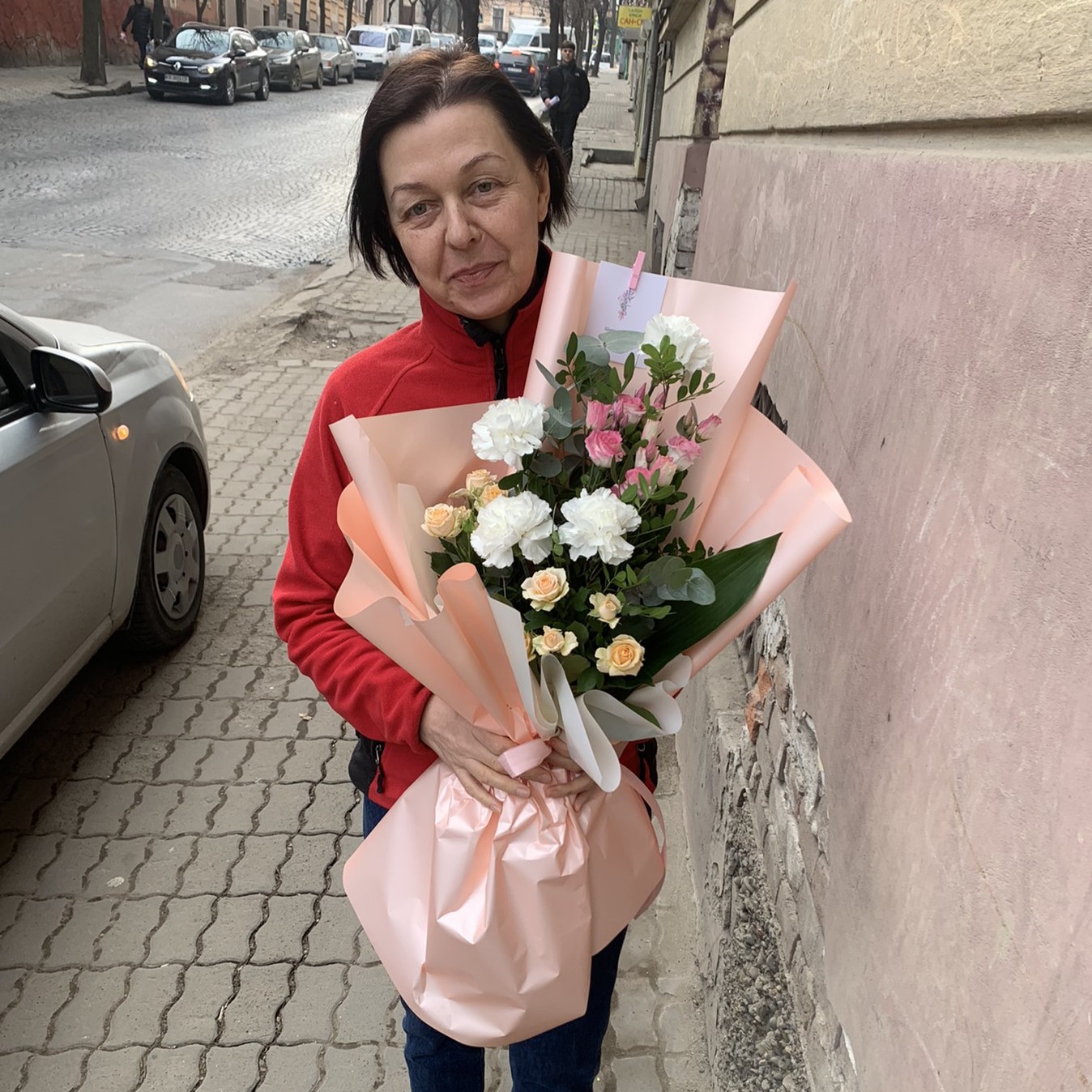 code [564558]Bouquet looks like in the photo. The composition and size matches the description. To obtain a standard decor and packaging