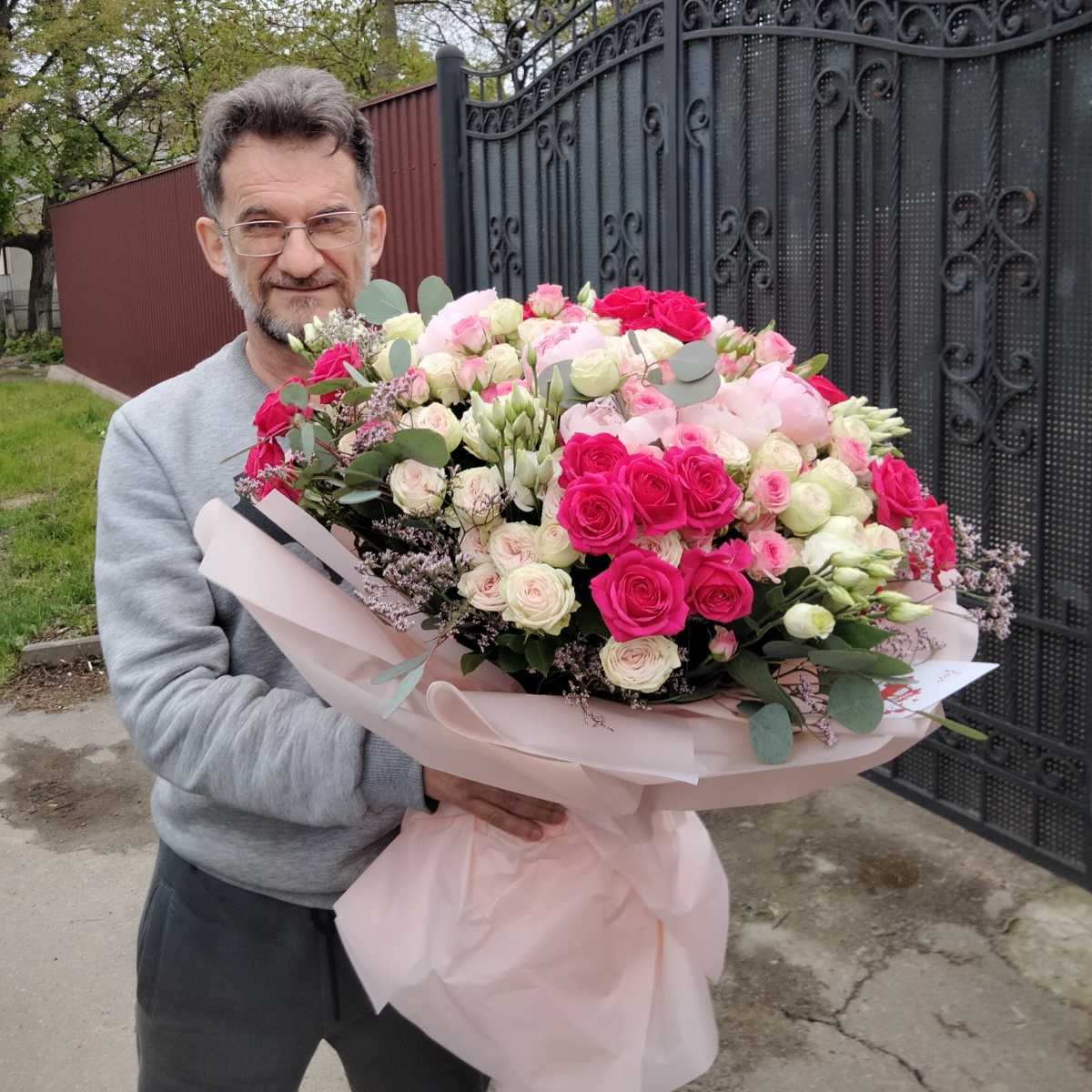 code [565162]Bouquet looks like in the photo. The composition and size matches the description. To obtain a standard decor and packaging