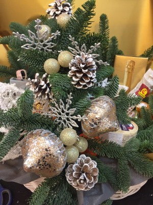 При складанні цих зимових букетів в якості основних матеріалів застосовують хвойні гілки як натуральні, так і штучні. Прикрашають їх свічками, шишками, ялинковими іграшками і кулями, цукерками і льодяниками, стрічками і мішурою.