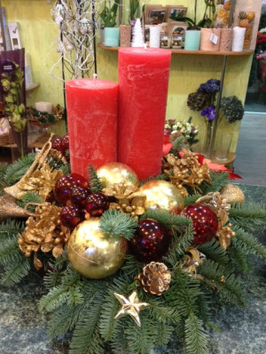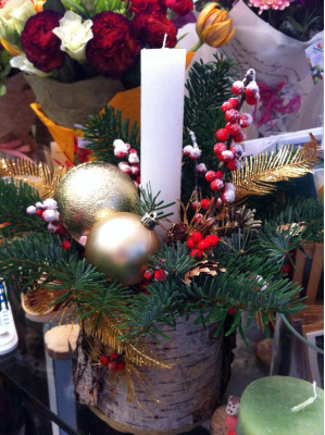 У складі композицій присутні також деякі квіти і фрукти. З квітів перевагу традиційно віддається амариліс, гвоздик, гербер, троянд червоних кольорів і різдвяного квітці - пуансеттии. З фруктів - цитрусовим, в основному апельсинів і мандаринів.